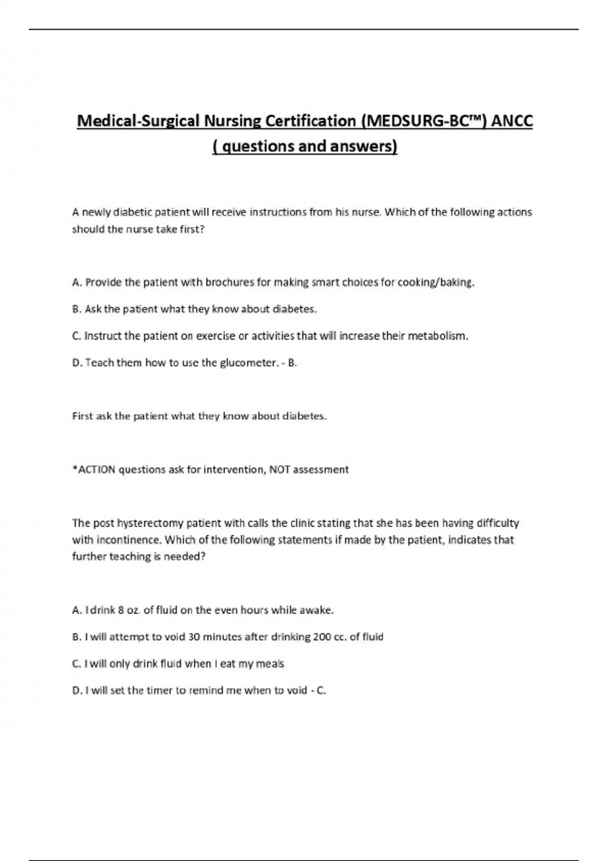 ANCC Med Surg Certification Exam Questions with Correct Answers ANCC