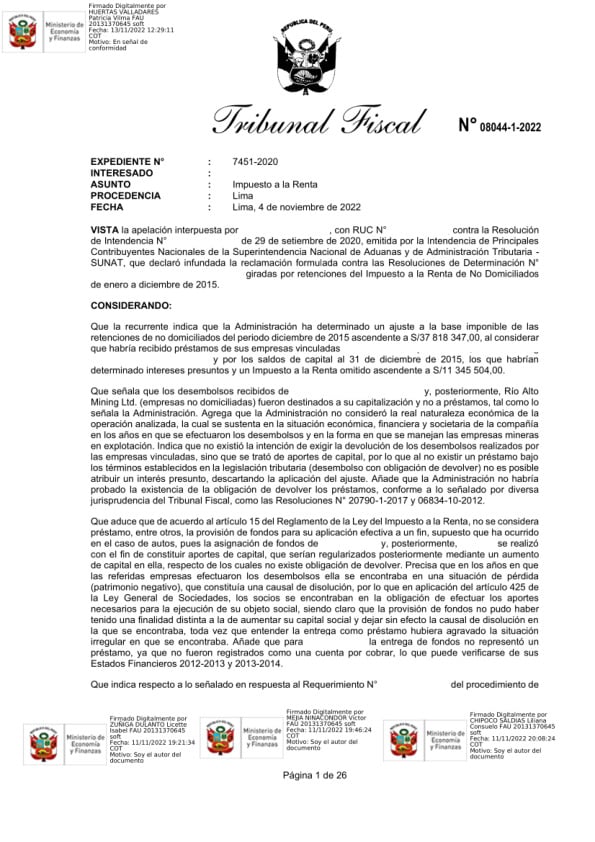 Peru vs quot Capital Ltd quot November 2022 Tax Court Case No 08044 1 2022
