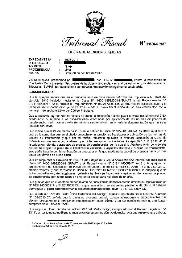 Peru vs quot Doc Request SA quot October 2017 Tax Court Case No 5521 2017