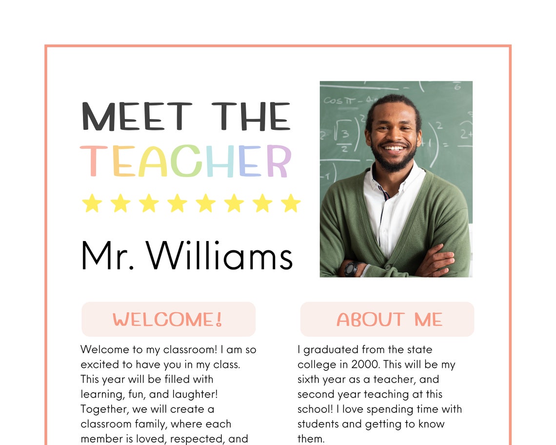Meet the Teacher Editable Template Printable Teacher Letter with Phot