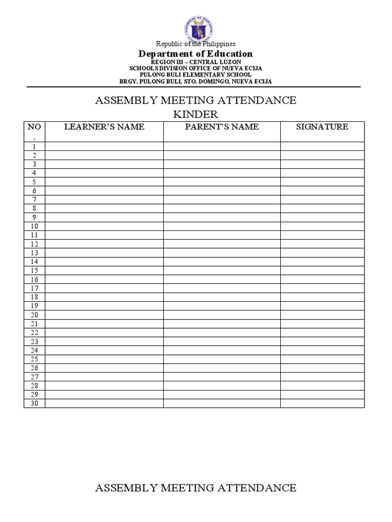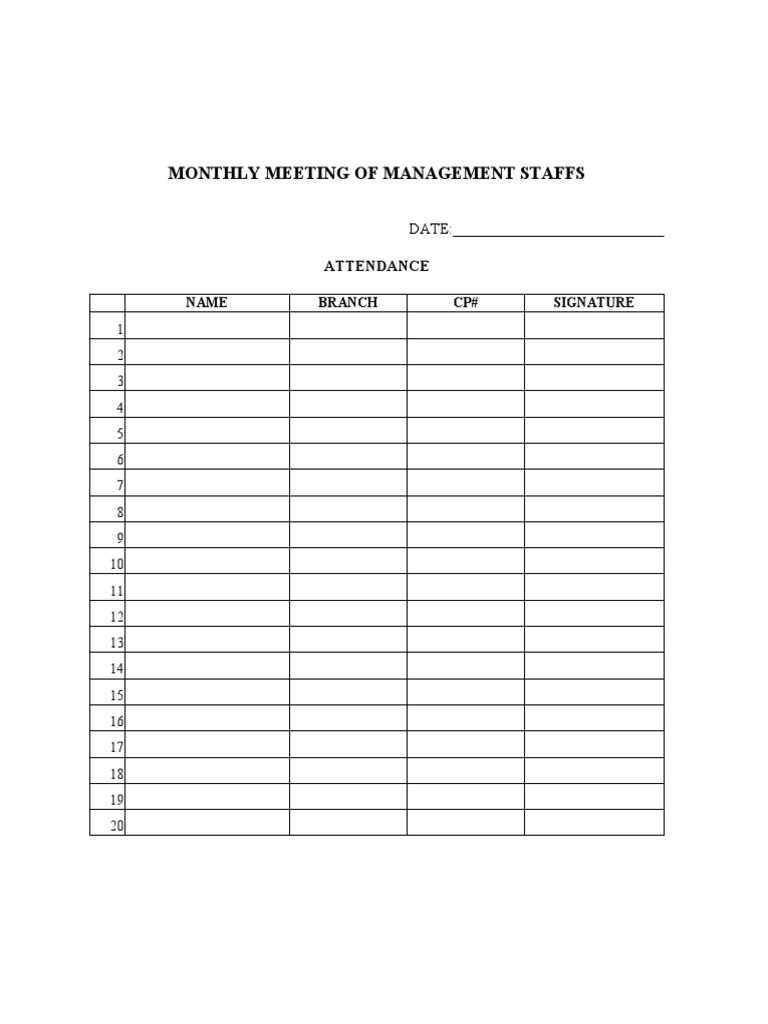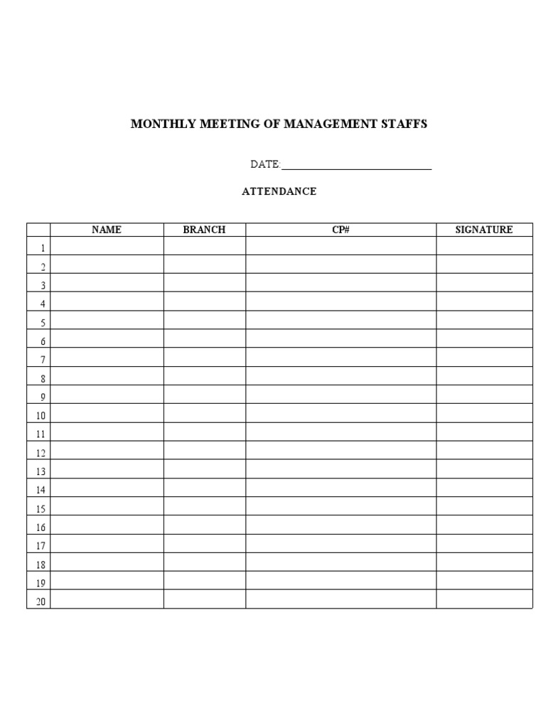 Business Meeting Attendance Sheet Template Attendance sheet template