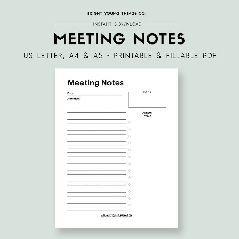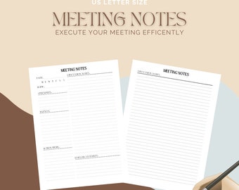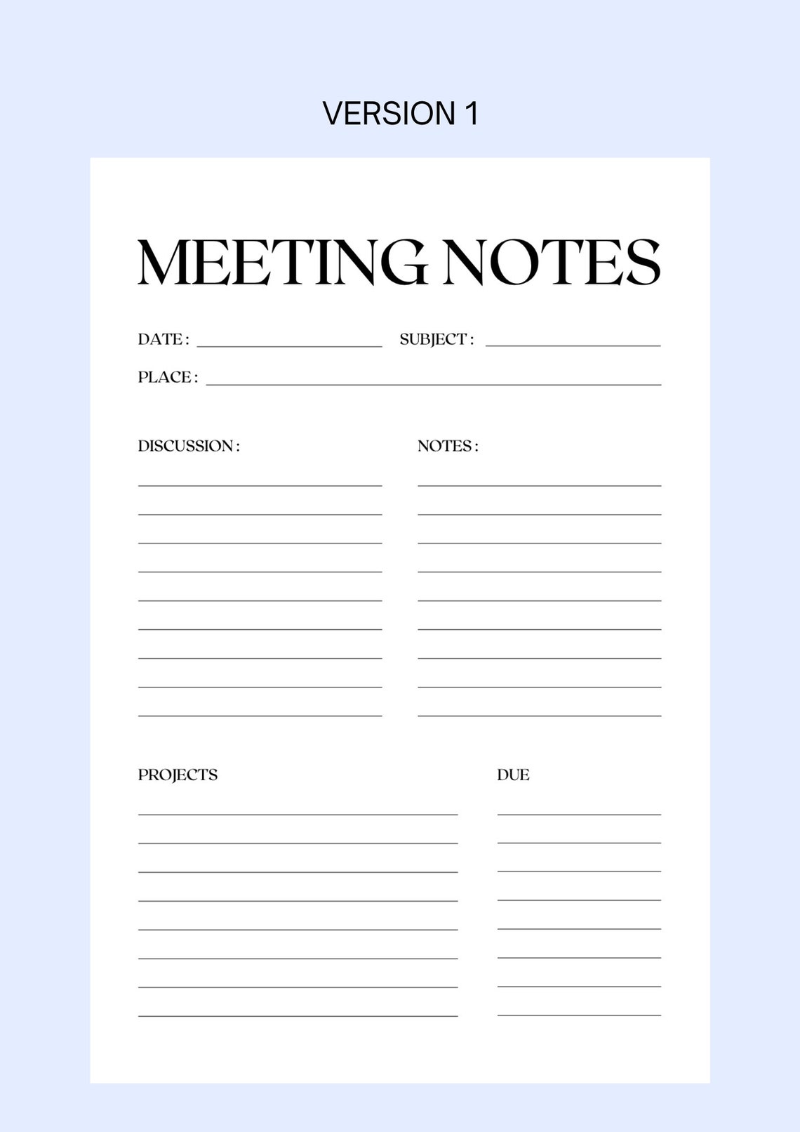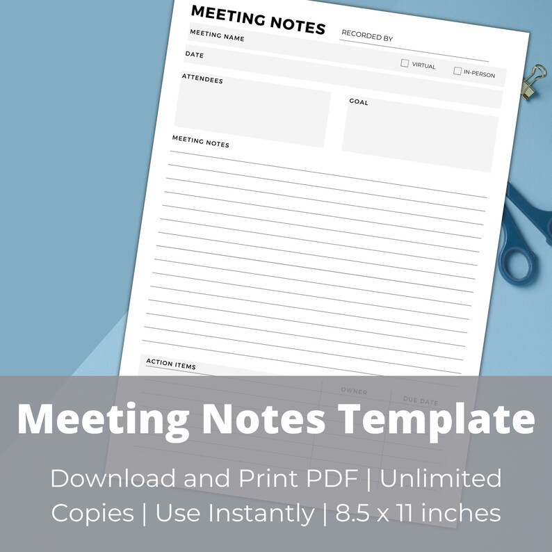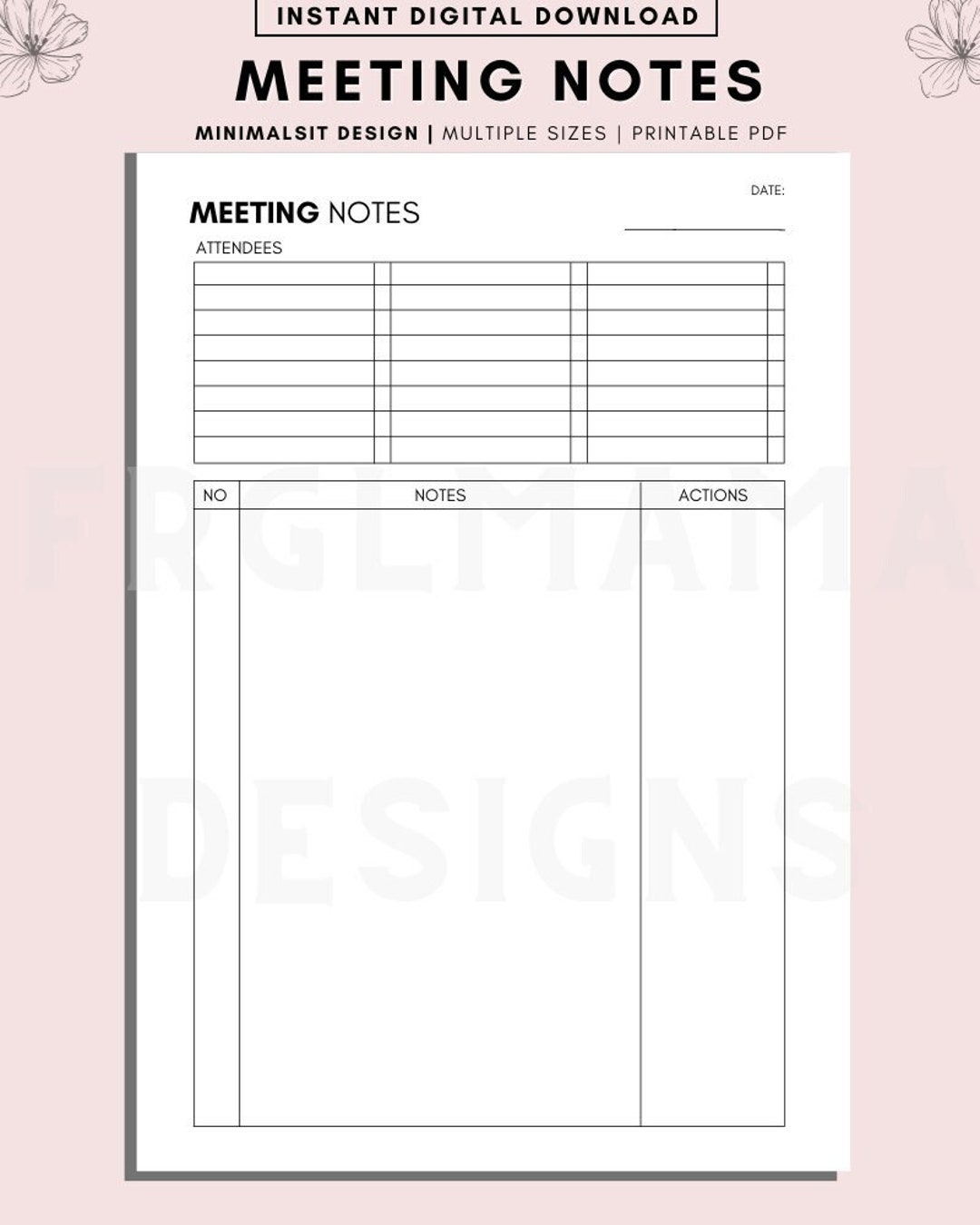 Minimalist Meeting Notes Template Digital Download Instant Access