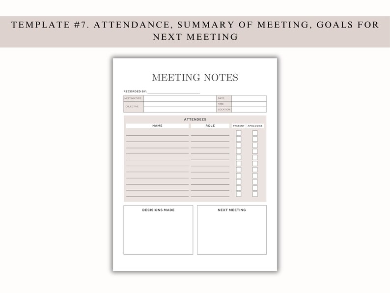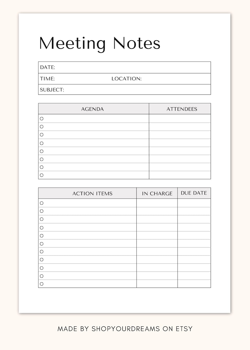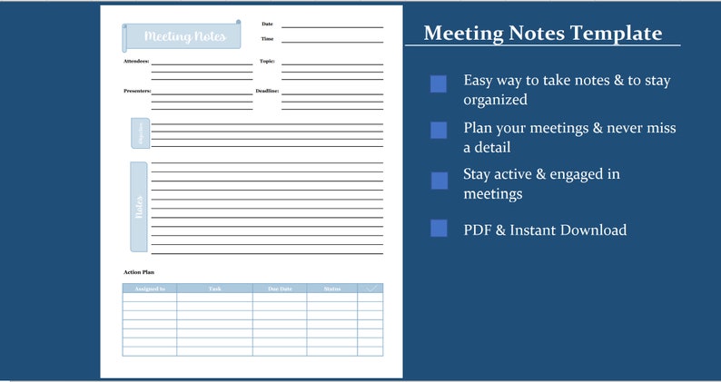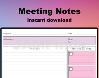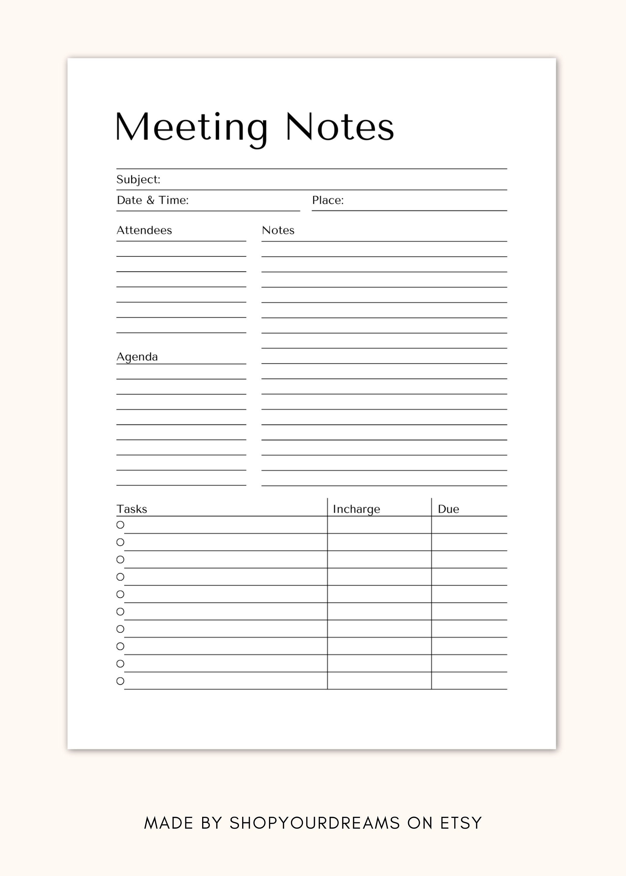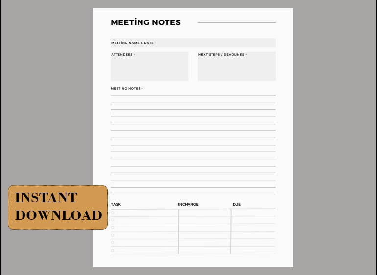 Minimalist Meeting Notes Template Digital Download Instant Access