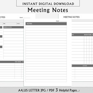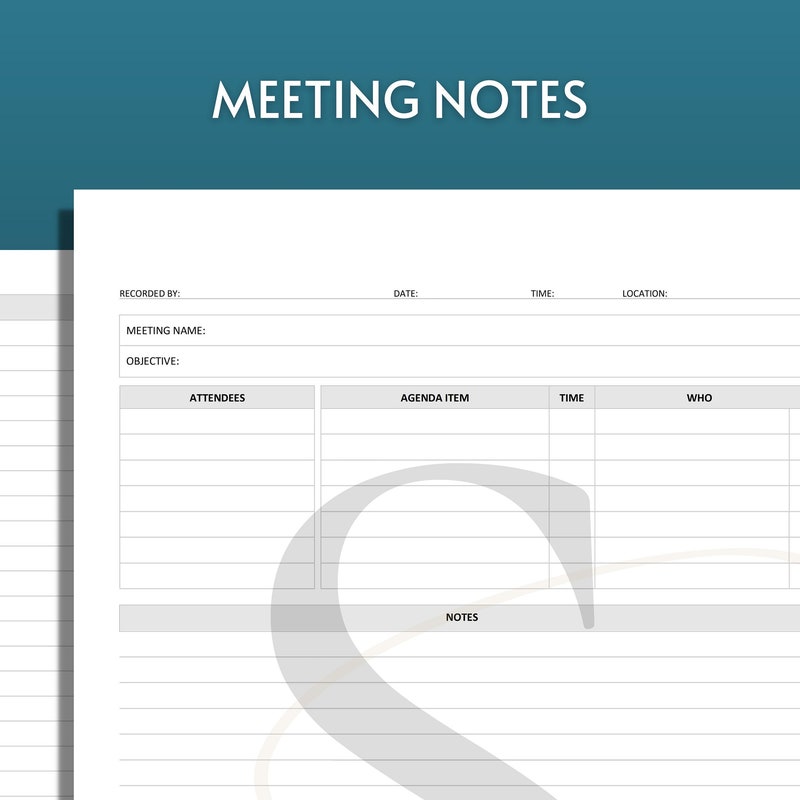 Meeting Notes Template Printable Meeting Notes for Business PDF Etsy