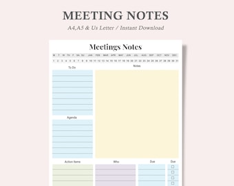 Printable Meeting Notes Template Meeting Notes Meeting Notes Etsy