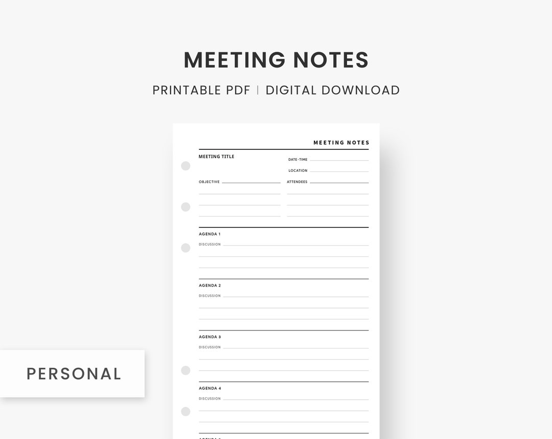 Simple Meeting Notes Printable Template Agenda Minutes Notebook PDF