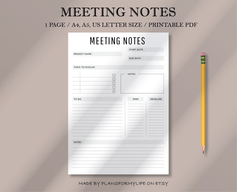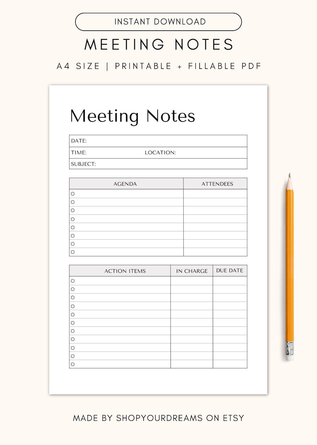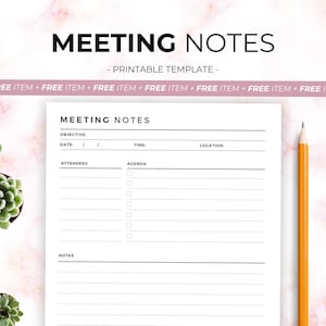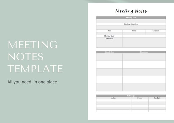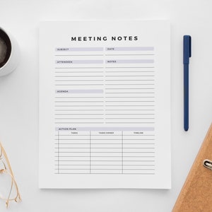 Meeting Notes Template Printable I Meeting Minutes I Meeting Etsy
