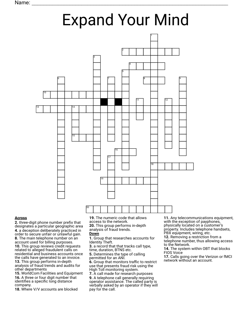 Expand Your Mind Crossword WordMint