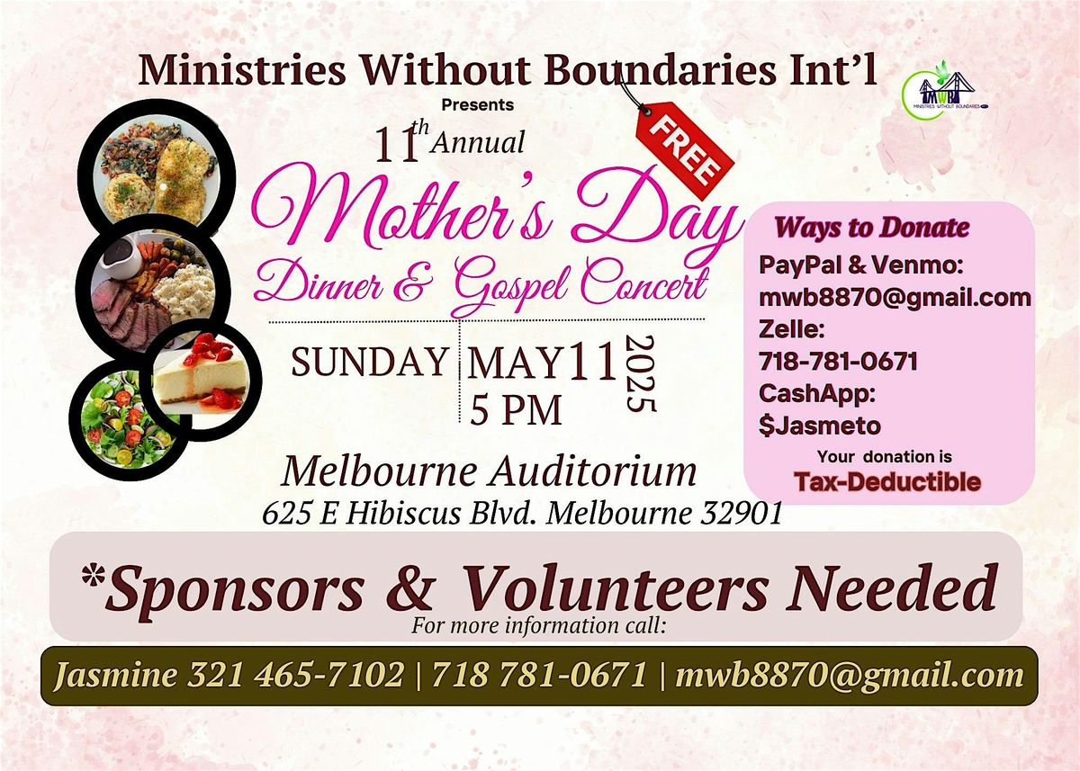 FREE MOTHERS DAY DINNER CONCERT Melbourne Auditorium 11 May 2025