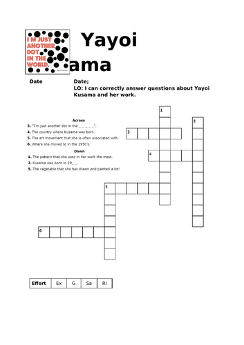 Yayoi Kusama crossword Teaching Resources