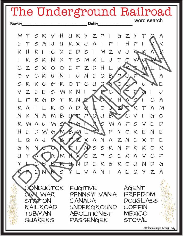 The Underground Railroad Activities Crossword Puzzle and Word Search