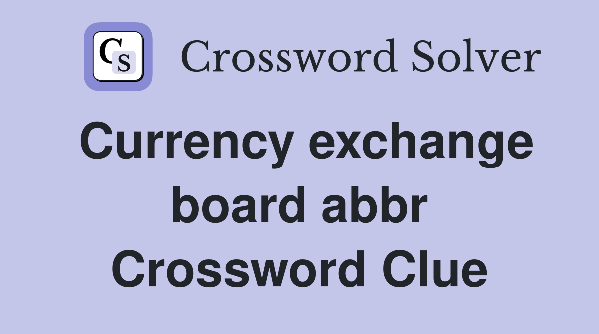 Currency exchange board abbr Crossword Clue Answers Crossword Solver