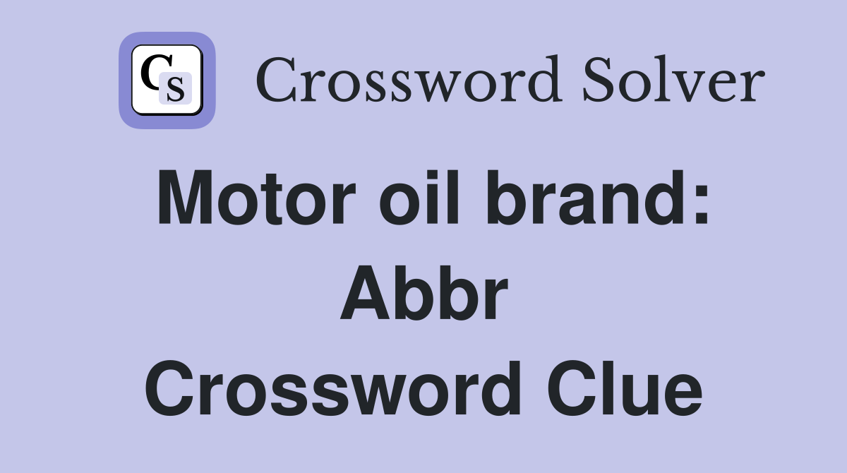 Motor oil brand: Abbr Crossword Clue Answers Crossword Solver