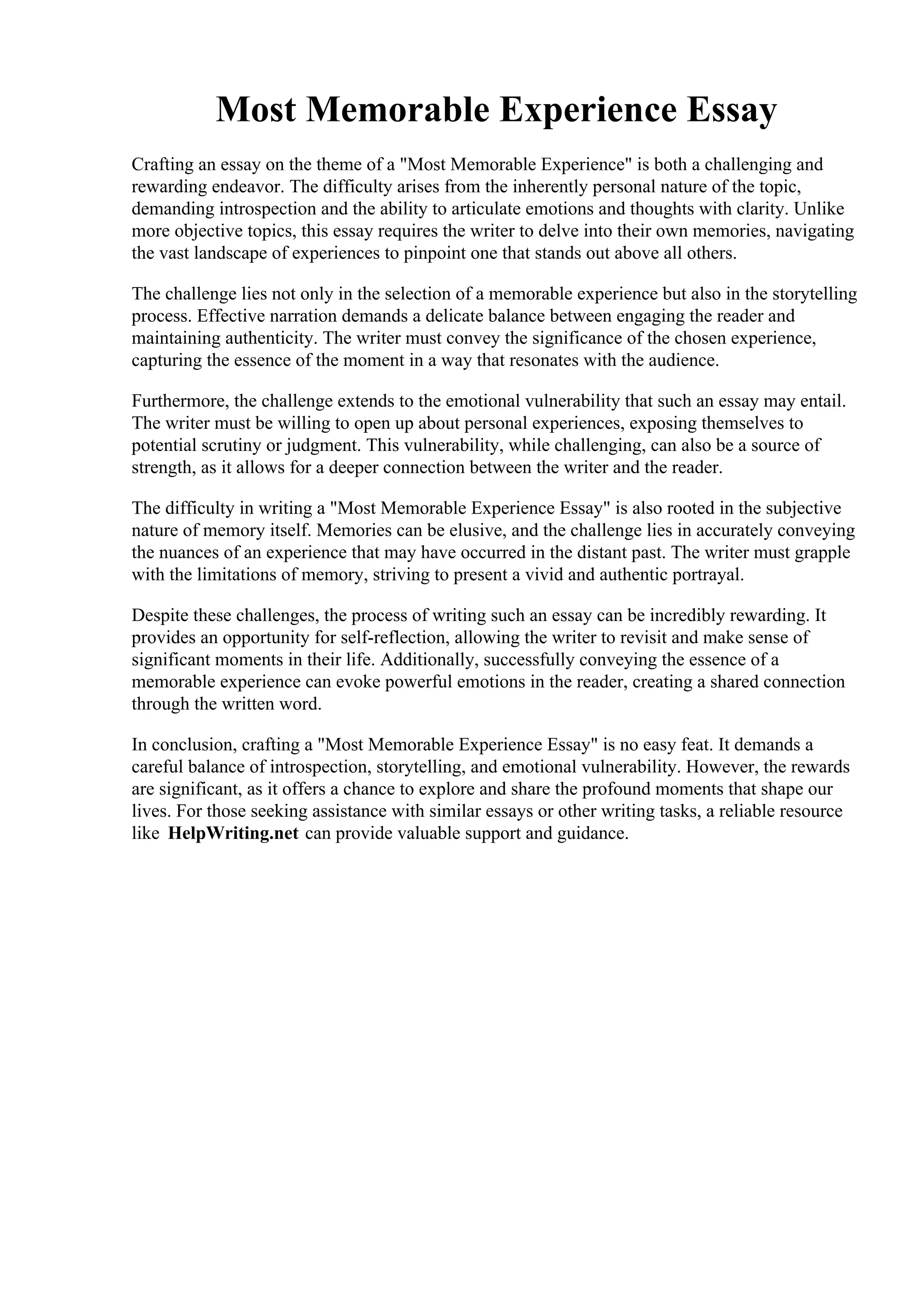 Most Memorable Experience Essay My Favorite Memorable Experiences in