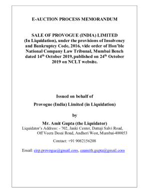 Fillable Online E AUCTION PROCESS MEMORANDUM SALE OF PROVOGUE Fax