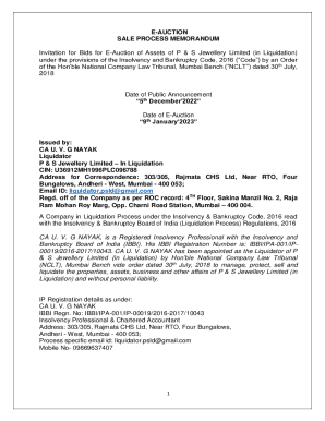 Fillable Online E AUCTION PROCESS MEMORANDUM Sale Fax Email Print