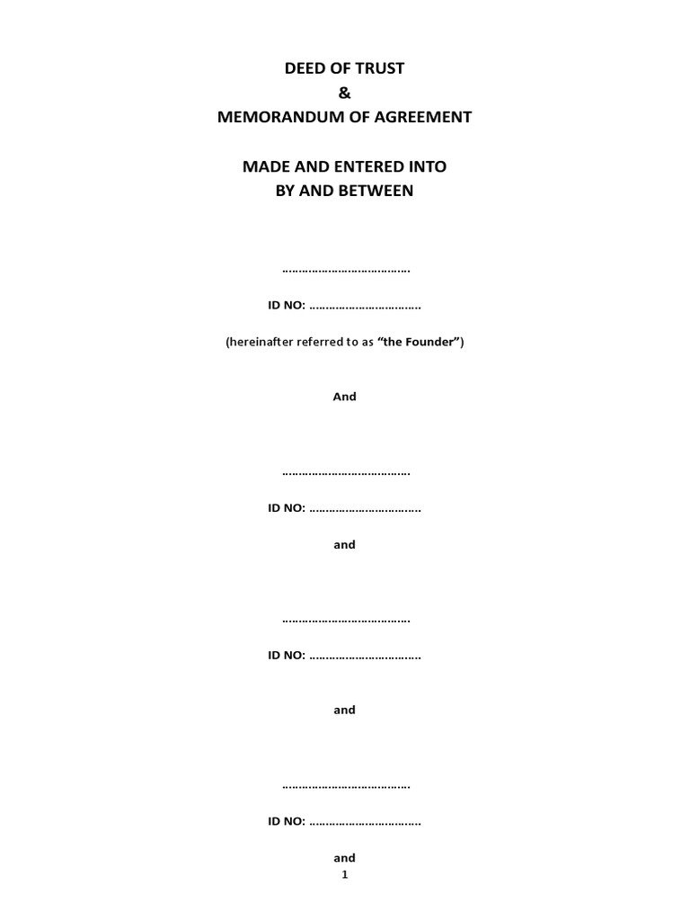 Deed of Trust Memorandum of Agreement Made and Entered Into by and