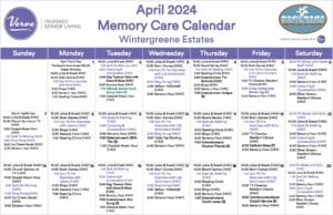 April 2024 Monthly Memory Care Activity Calendar Wintergreene