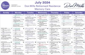 July 2024 Monthly Memory Care Activity Calendar Don Mills