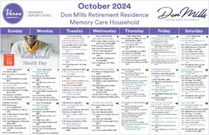 October 2024 Monthly Memory Care Activity Calendar Don Mills