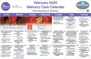 February 2024 Monthly Memory Care Activity Calendar Wintergreene
