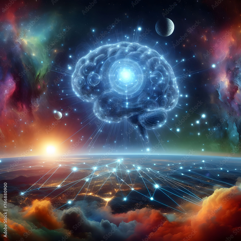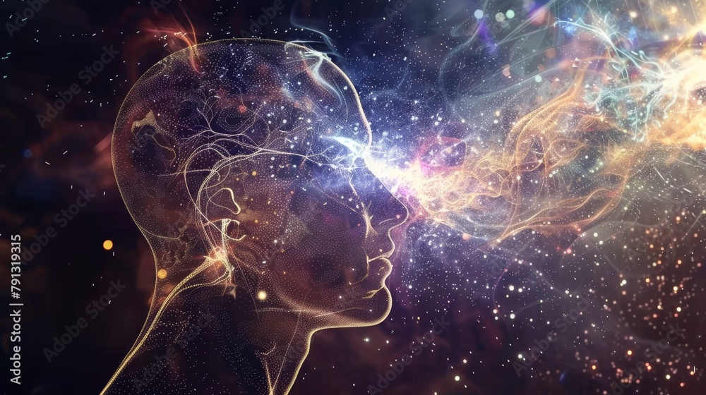 synergies of the mind with glowing space particles premium 4K wallpaper