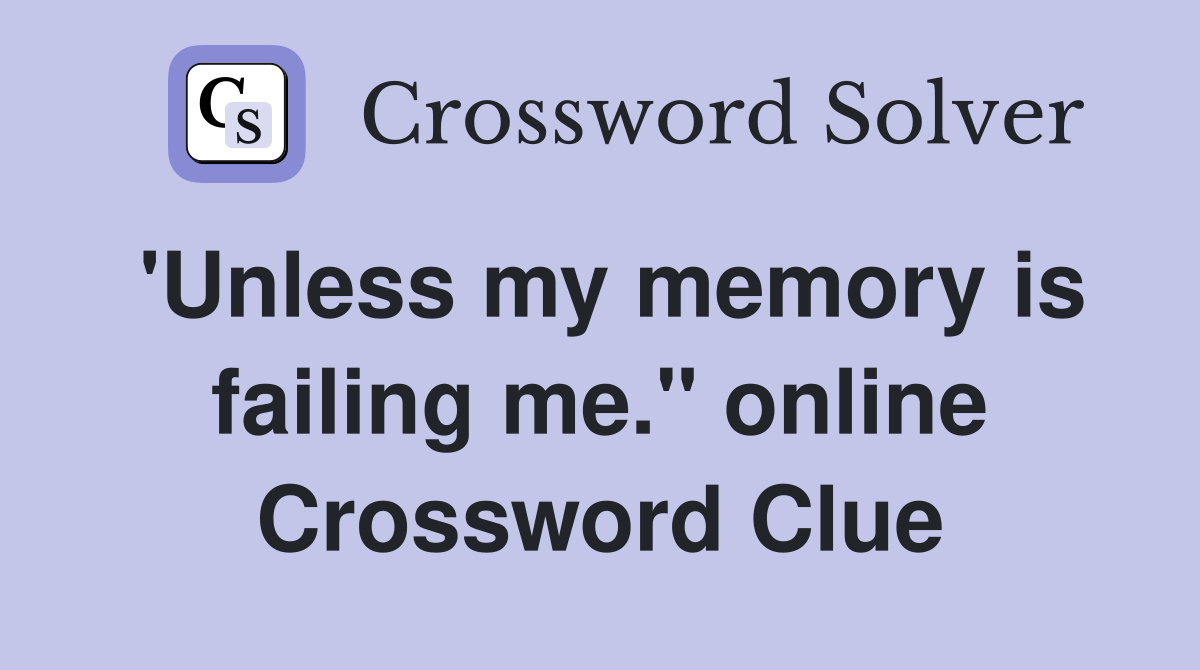 #39 Unless my memory is failing me quot online Crossword Clue Answers