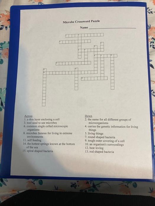 Solved Microbe Crossword Puzzle Name Across 1 a thin layer Chegg com