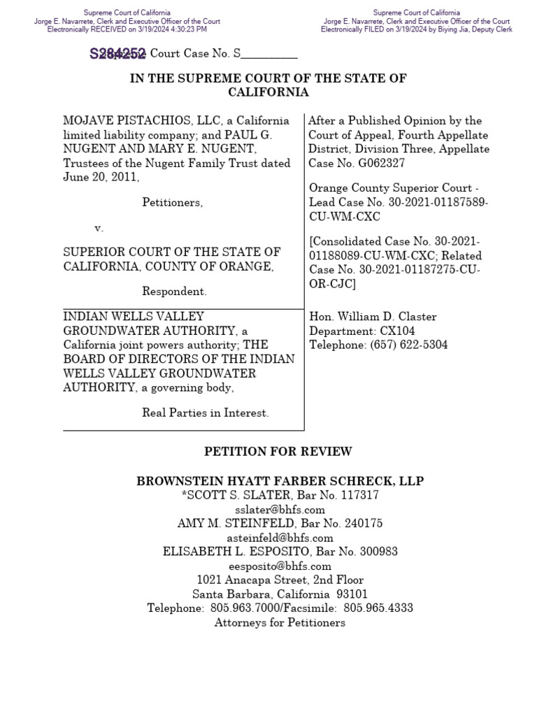 Petition for Review Mojave Pistachios LLC v Superior Court No