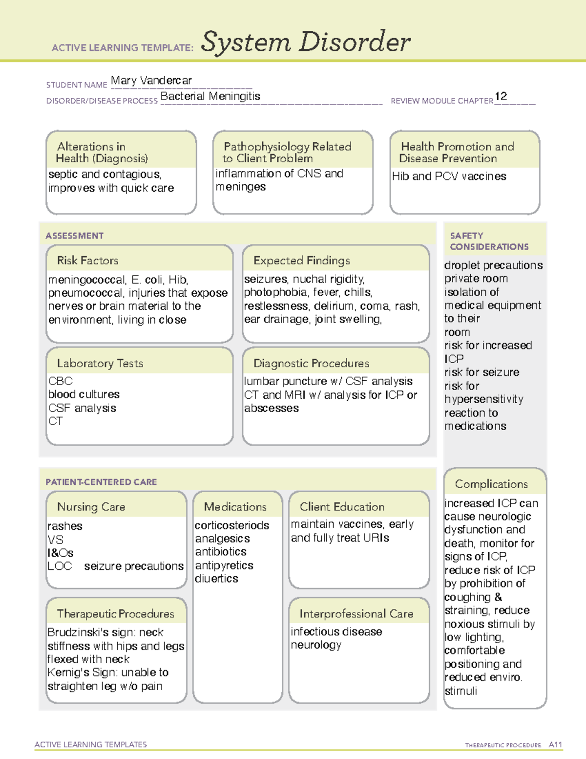 ATI meningitis system disorder ACTIVE LEARNING TEMPLATES THERAPEUTIC