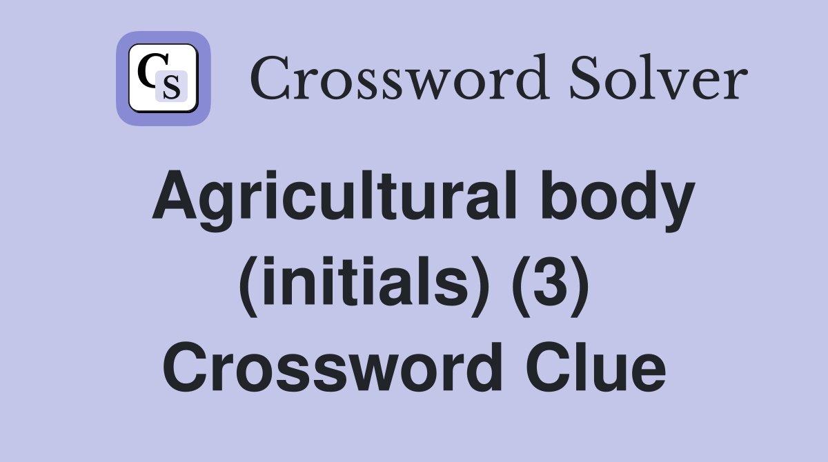 Agricultural body (initials) (3) Crossword Clue Answers Crossword