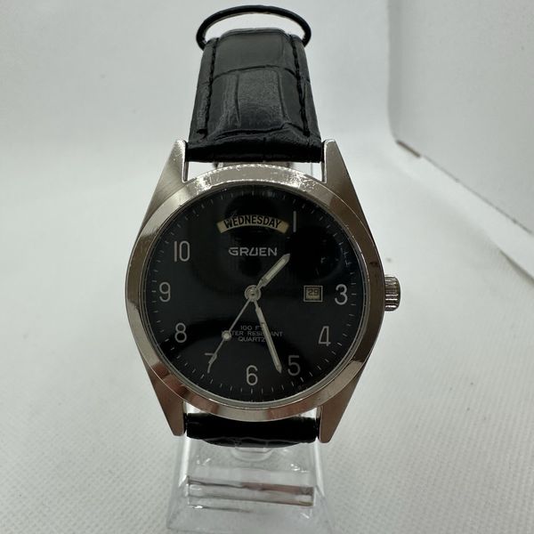 Vintage Gruen Calender Day/Date Mens Watch Checkered Embossed Dial