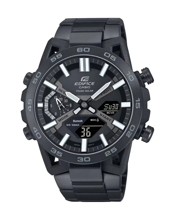 Casio Edifice Mens Black Stainless Steel Case Round Analog Digital