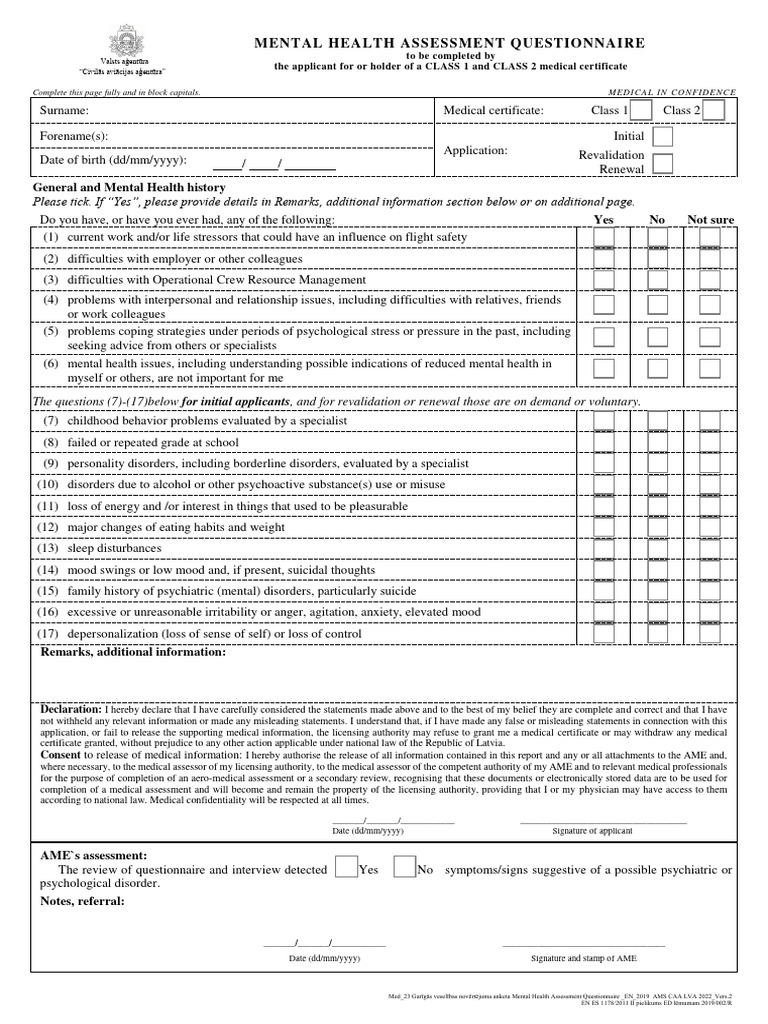 Mental Health Assessment Questionnaire PDF