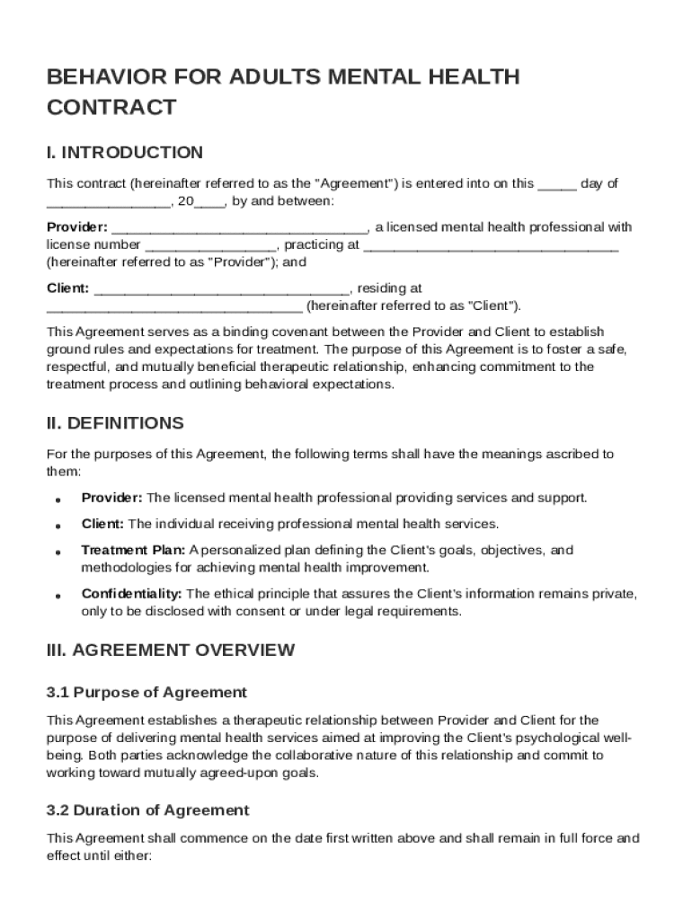 Behavior For Adults Mental Health Contract Template: Fill out sign
