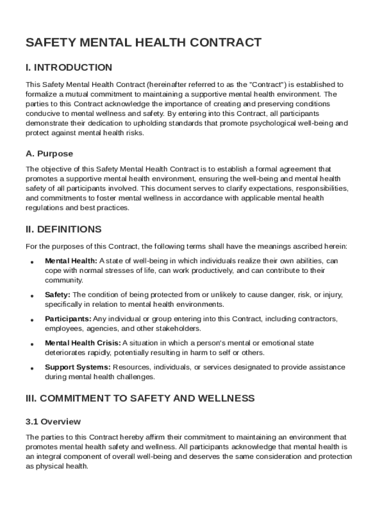 Safety Mental Health Contract Template: Fill out sign online DocHub