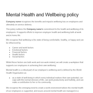 Mental Health Policy Template for Workplace Wellbeing Editable Word