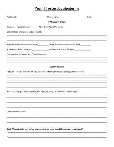 Assertive Mentoring Weekly Meeting Sheet by MissRathor Teaching
