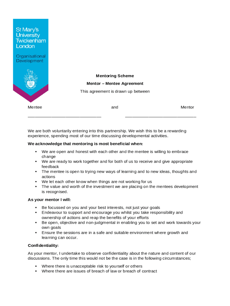 Fillable Online Mentoring Agreement template Fax Email Print pdfFiller