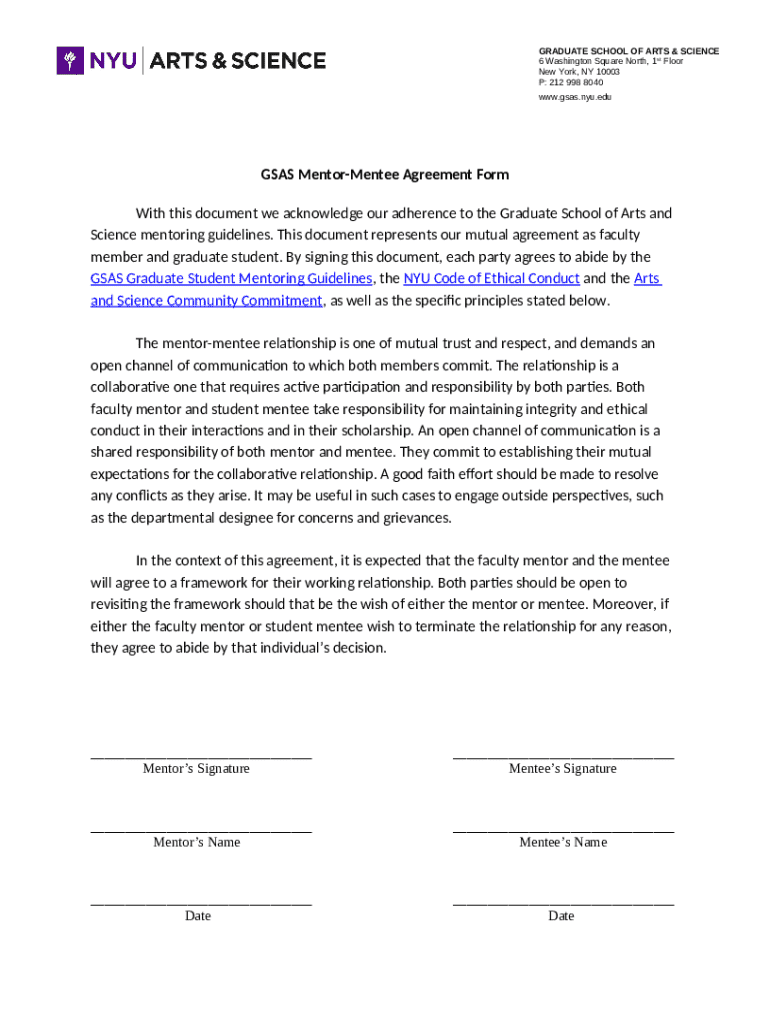 Gsas Mentor mentee Agreement Doc Template pdfFiller