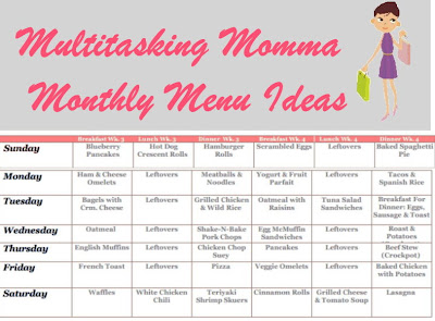 A Day In The Life of A MultiTasking Momma: Monthly Menu Meal Ideas