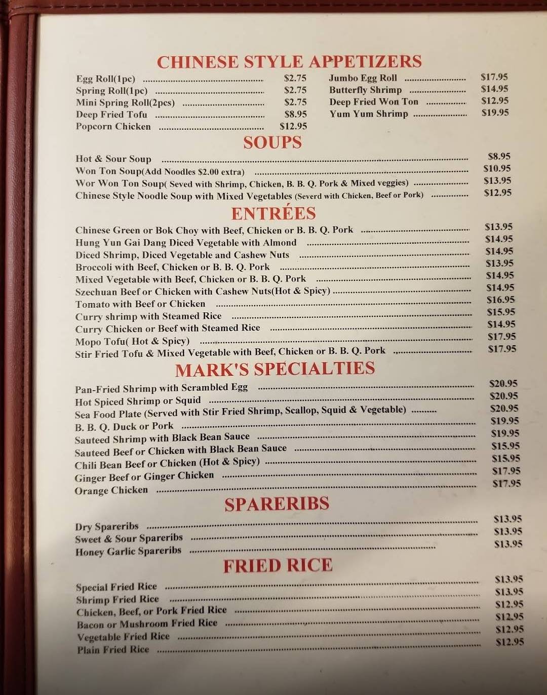 Menu at Mark #39 s Family Restaurant Yellowknife
