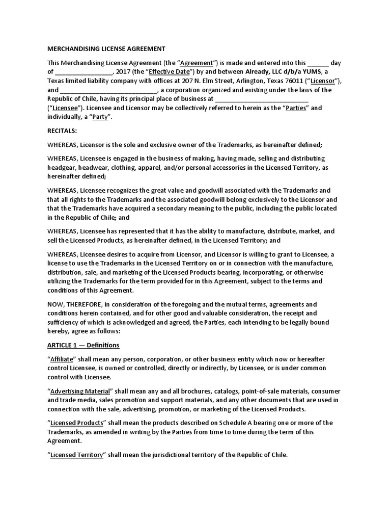 Merchandising Agreement Download Free PDF License Royalty Payment