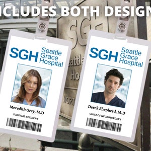 PRINTABLE Greys Anatomy Meredith Grey and Derek Shepherd Id Cards