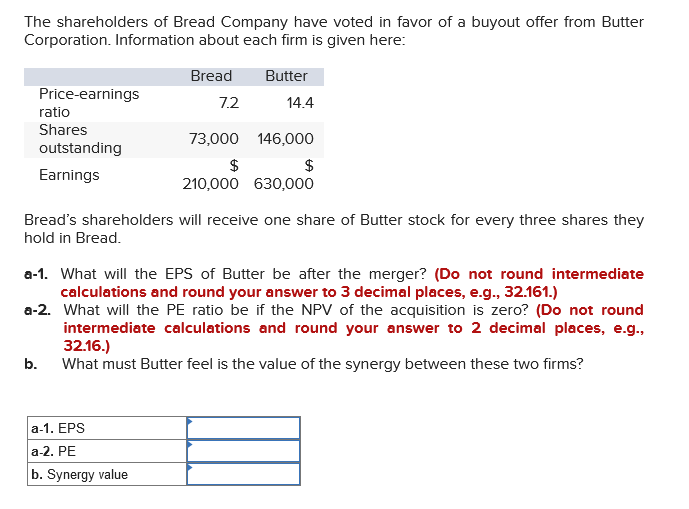 Solved The shareholders of Bread Company have voted in favor Chegg com