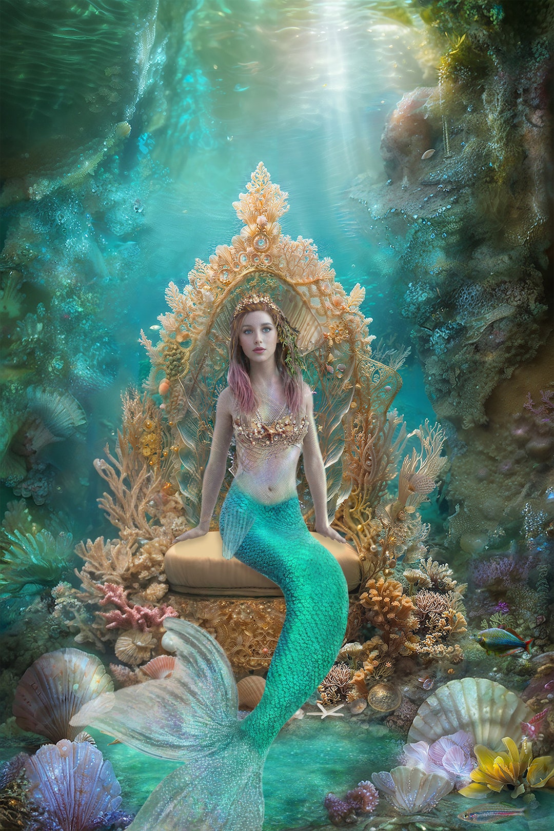 Mermaid Underwater Throne Digital Background With Bonus Tail Studio