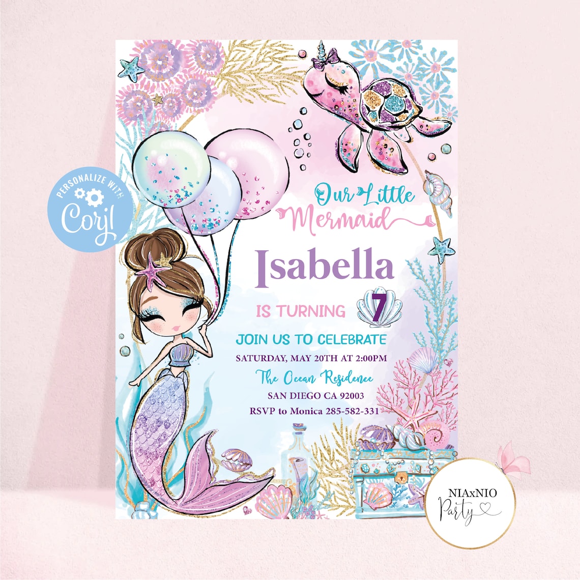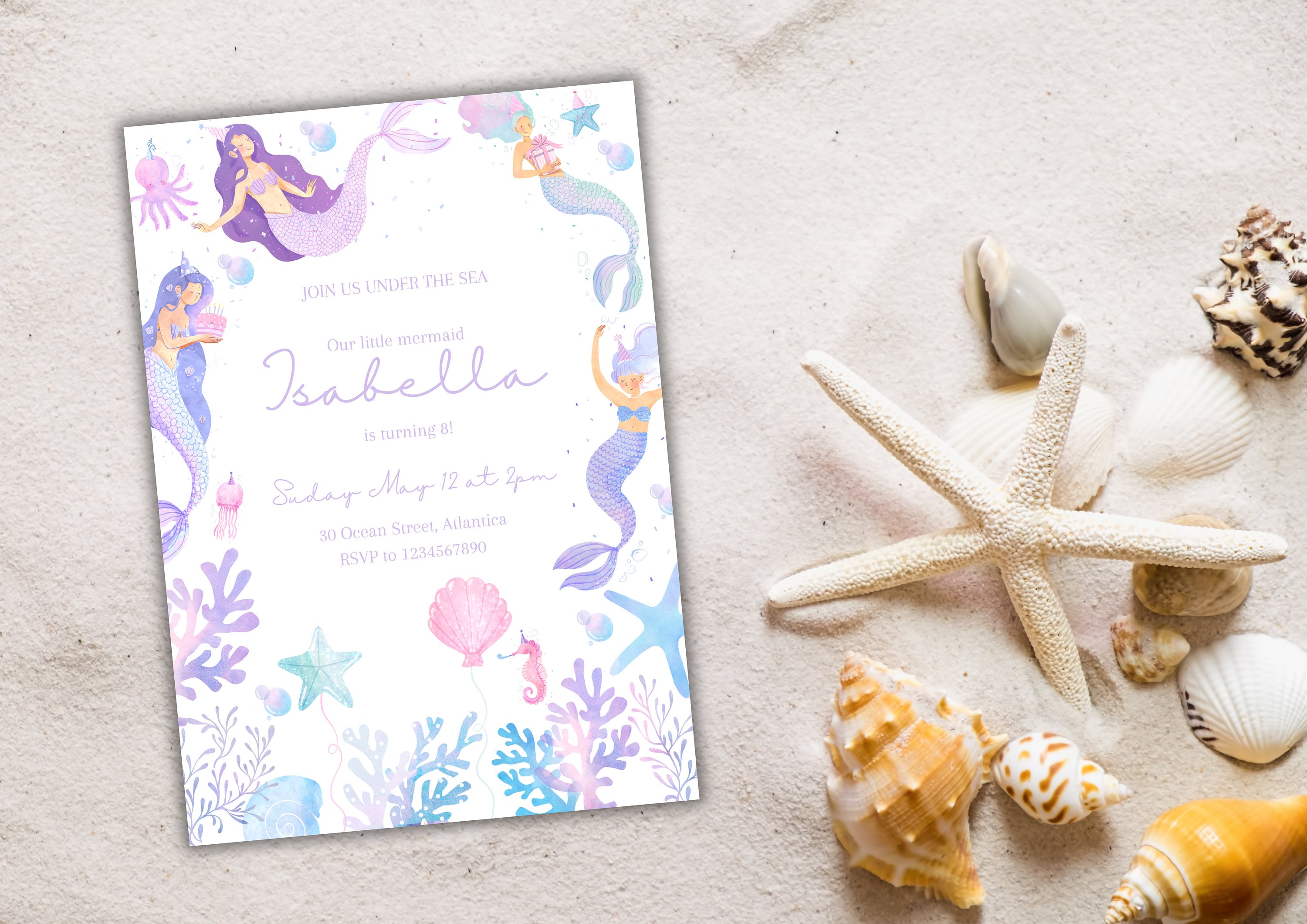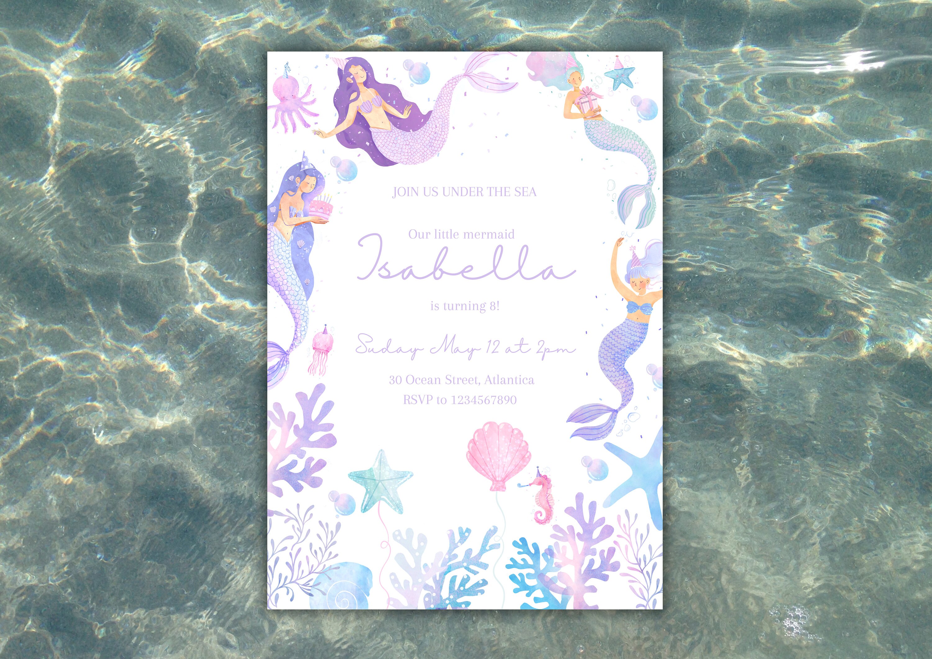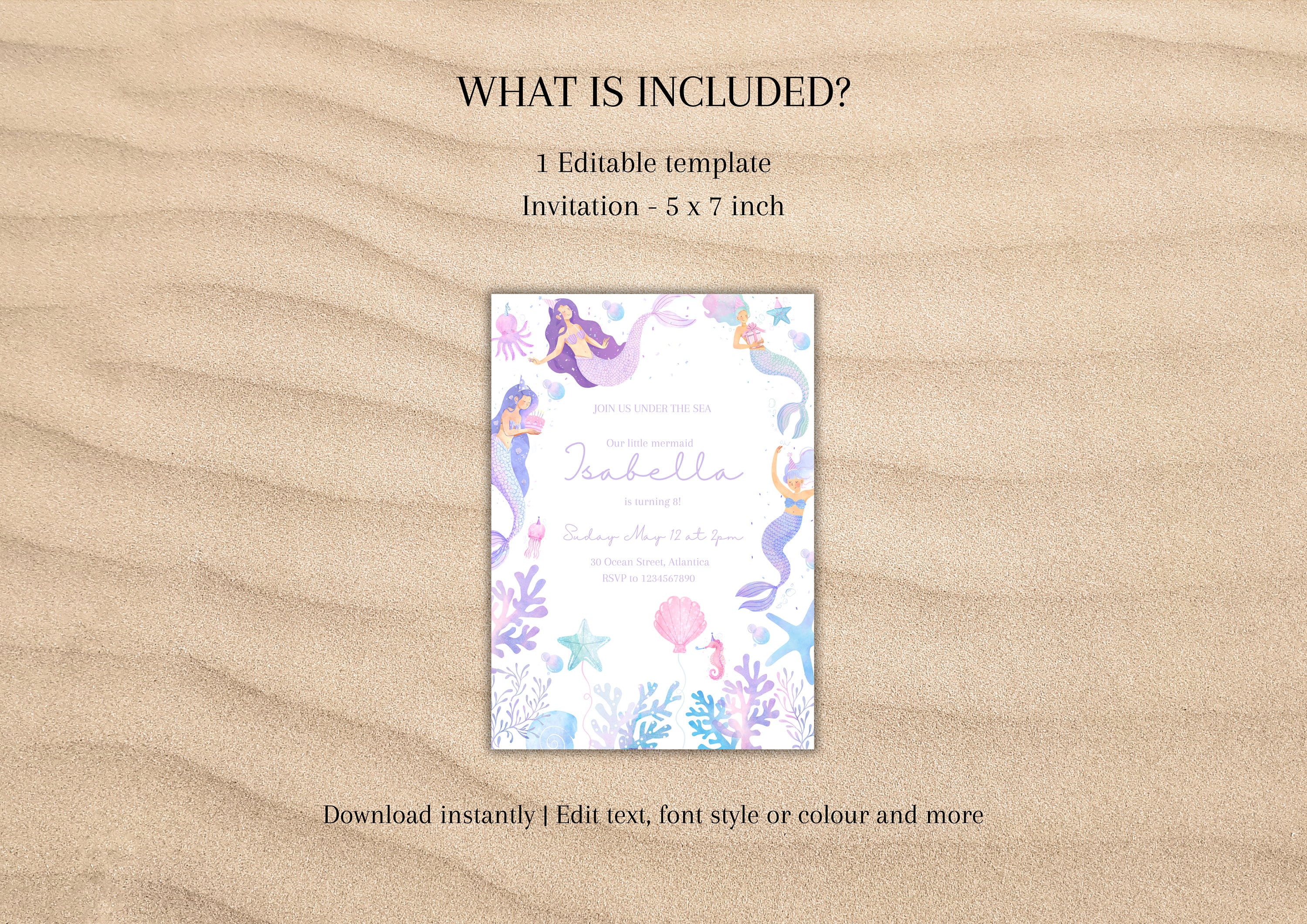 Mermaid Birthday Invitation Template: Editable Under the Sea Invite