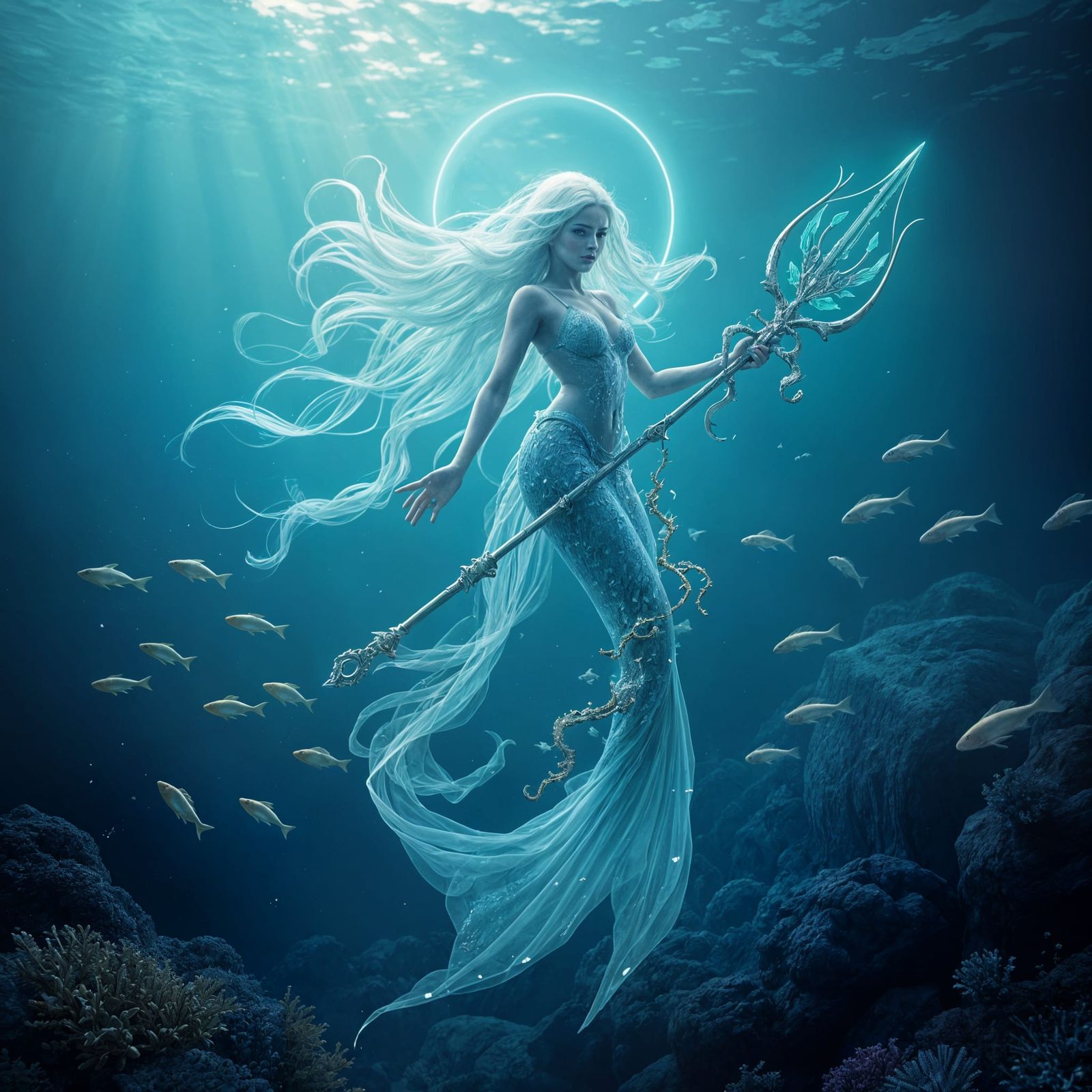 Ghost mermaid holding a Trident Mystical Mermaid Goddess