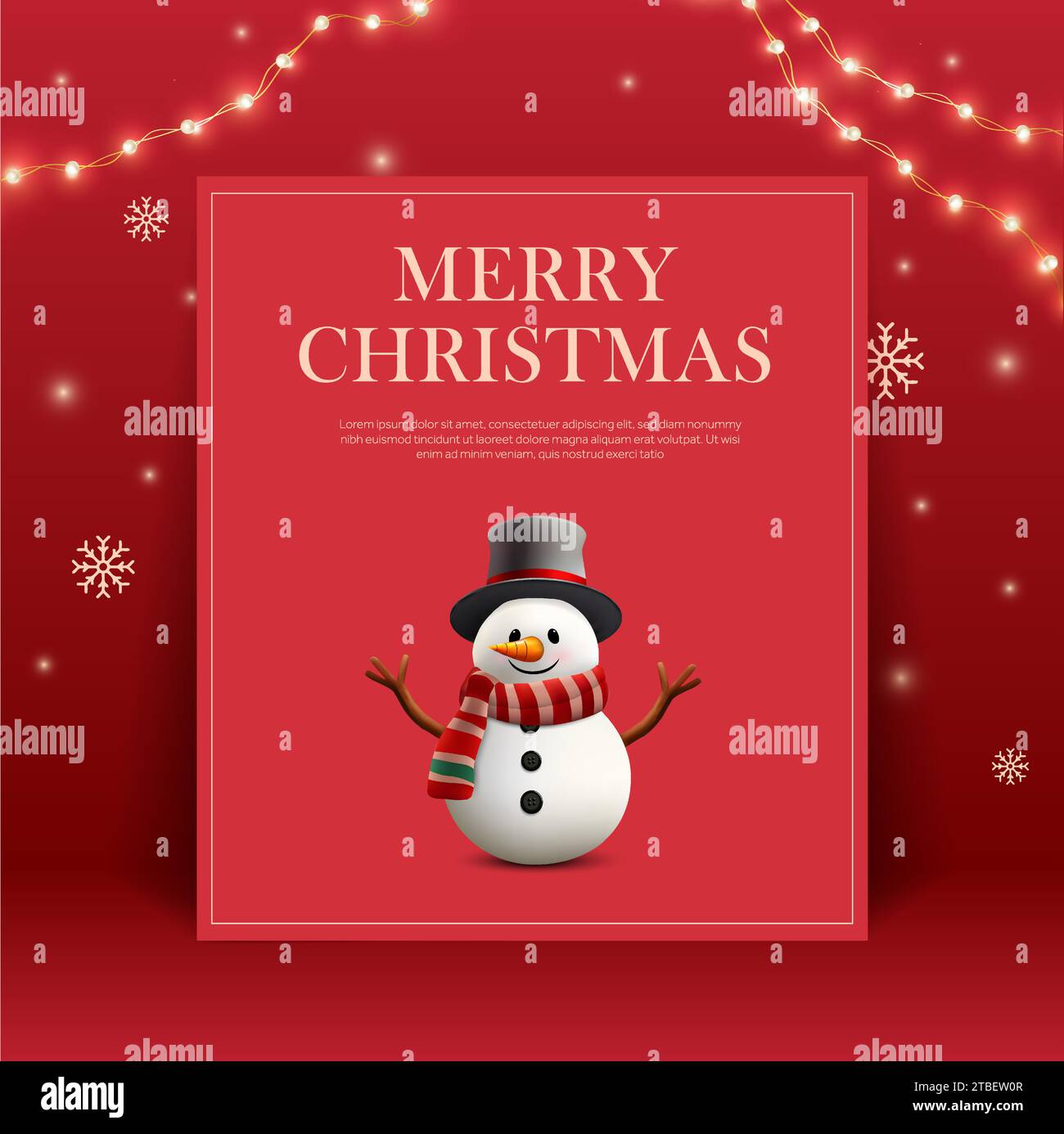 3d Merry Christmas Gift Card Template with Cute Snowman Snowflakes