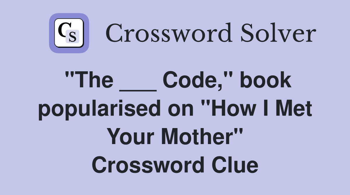 quot The Code quot book popularised on quot How I Met Your Mother quot Crossword